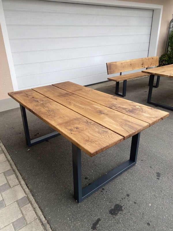 Die Stärke der Tischbohlen beträgt 40mm und ist speziell für den Outdooreinsatz geölt.